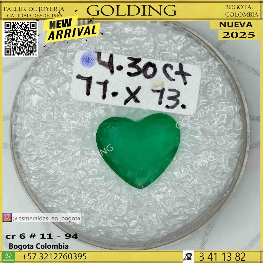 Descubre la excelencia en esmeraldas colombianas en Joyería Golding. Nuestras piedras certificadas, valoradas por su color, brillo y tamaño, son únicas e irremplazables. Con 12 cortes distintos, desde redondas hasta lágrima, garantizamos joyas que resaltan la belleza única de cada esmeralda. Eleva tus ocasiones especiales con nuestra colección exclusiva.
